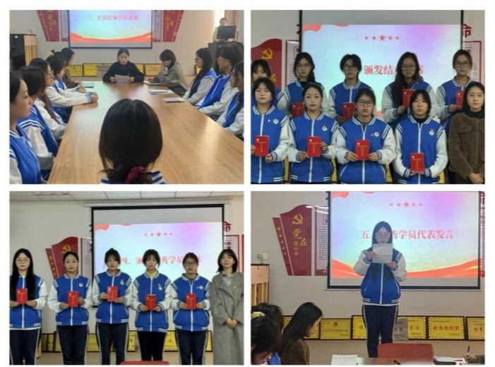 左馨宣读了本期培训班结业学院名单及优秀学员名单,向所有顺利完成学业、表现出色的学员致以热烈祝贺。王雪乐向完成培训任务的学员颁发结业证书,叶蕊向优秀学员颁发优秀学员证书。随后,卢萍同学、赵蕊同学分享了自己在培训期间的宝贵收获。她们谈到这次培训不仅是一次知识的洗礼,更是一次精神的提升,表示未来会继续努力,以实际行动争取早日成为一名合格的共产党员。