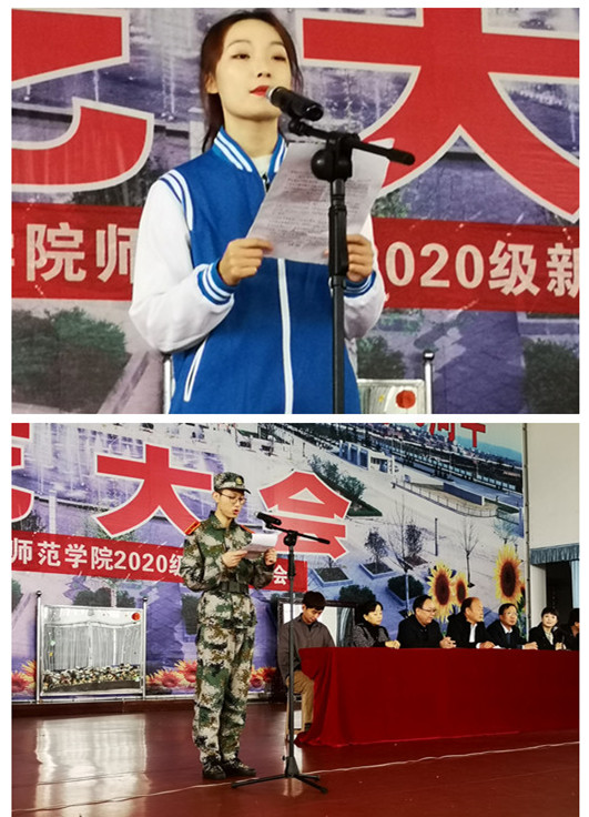 新生代表许亮同学代表2020级全体新生表达了对大学生活的憧憬,表示在未来大学生活中一定会努力提升个人能力,全面发展,勇创佳绩,决不辜负学校领导老师的厚望。