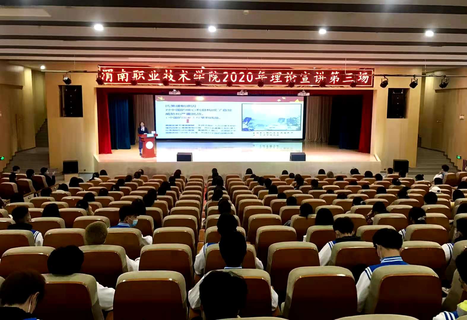 11月18日下午,十大信誉官网2020年理论宣讲第三场在新校区图书馆报告大厅开讲。思政课部讲师裴昉为澳门十大信誉好的网站、农学院及机电工程学院计算机应用技术(美和易思)共计两百名学生作了题为《再唱英雄赞歌汲取伟大精神》——深入学习习近平在纪念抗美援朝出国作战70周年讲话的主题宣讲,宣讲会由澳门十大信誉好的网站党总支副书记黄翠萍主持。