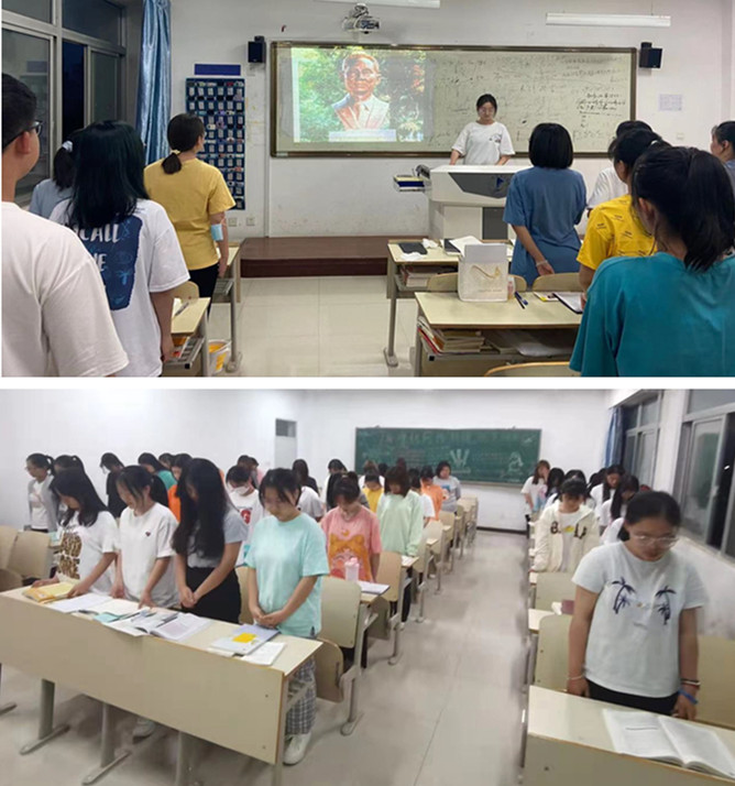 5月24日晚,我院学生自发举办了以“缅怀丰功伟绩、立志报效祖国”为主题的追思活动。从上午开始,学前高职1905班杨满军就和班委们一起讨论追思活动的安排,晚七点半,全班同学神情肃穆,黑板上工整地书写“国士远去,吾辈自强”八个大字,活动开始,全班同学凝目肃立,满含热泪,面向袁隆平爷爷的遗像默哀,杨满军介绍了他的生平和主要事迹,同学们齐声朗诵对袁隆平爷爷的致敬词,“一粥一饭,当思来之不易;半丝半缕,恒念物力维艰。从此以后,碗中有米,心中有您,青年定当不负您所望,袁爷爷,一路走好!”活动结束后,该班曹浩辰激动地说:“袁爷爷是国之重士,他是我们青年大学生的人生楷模,他才是我们最应该追的星!我们一定要以他为榜样,苦练教学基本功,用自己的一生服务祖国。”