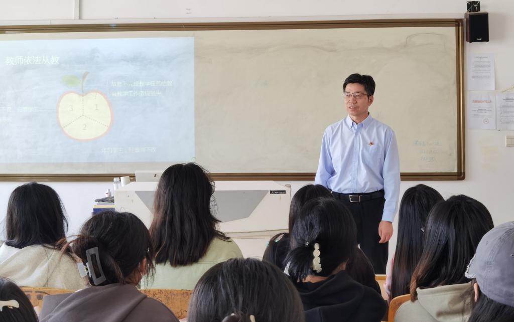 9月26日上午,校长靳华锋在党政办主任雷建文陪同下来到联系单位澳门十大信誉好的网站,深入学前五高2003班听取了孙蕾飏老师的一节《教师职业道德》课。听课结束后,靳华锋勉励学生要刻苦学习,精技强能,努力成为堪当社会大任的时代新人。