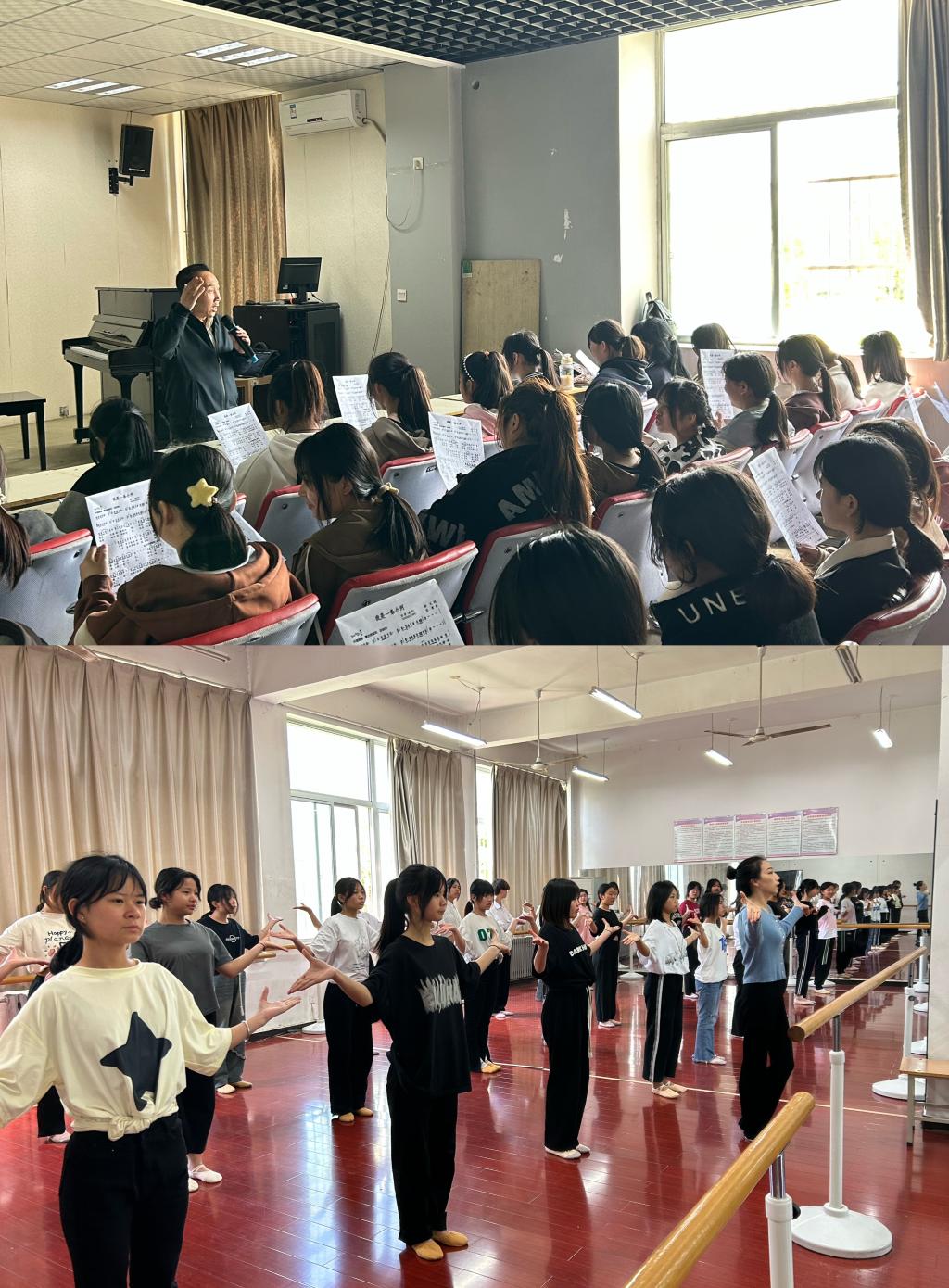 随后三天,研学师生深度体验了澳门十大信誉好的网站音乐教研室刘星、李磊、刘鲁艳、张圃丽等老师带来的声乐与钢琴课,舞蹈教研室黄雯、陈文文、张媛、闫鸽等老师带来的舞蹈创编、民族舞、健美操课等。课堂上,师生互动积极,气氛活跃,各位老师敬业的精神、扎实的专业素养获得了研学师生的高度赞誉。