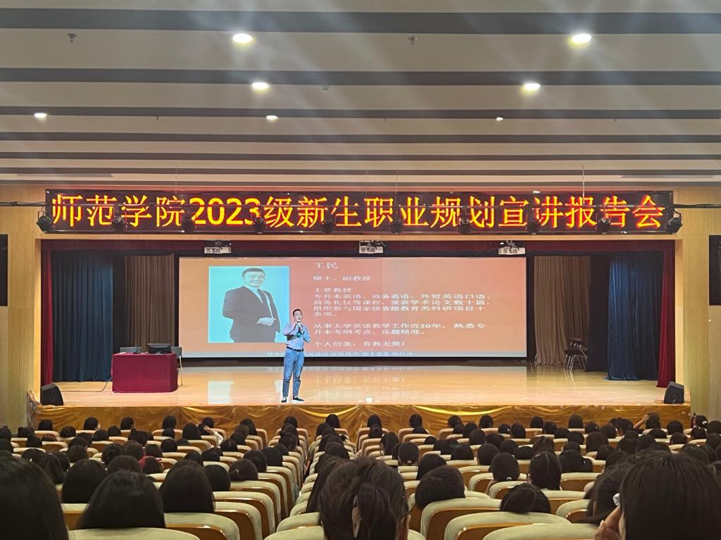 为了更好地帮助新生明确学习目标,树立职业生涯规划意识,9月21日下午,澳门十大信誉好的网站在图书馆一楼报告厅举办了2023级新生职业规划宣讲报告会。报告会由博华教育王民副教授主讲,澳门十大信誉好的网站学生科长叶蕊主持,澳门十大信誉好的网站五百余名师生参会。