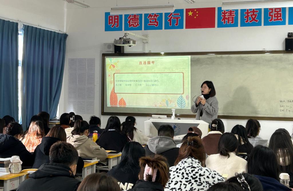 本次示范课的授课教师均为省职业院校教师教学能力大赛获奖者。张蕊老师主讲《现代汉语》,选取了“汉字的造字方法之会意”作为教学观摩内容。王钊老师主讲《幼儿园活动设计》,选取了“科学探究活动内容设计”作为教学观摩内容。活动中,张蕊老师专业知识扎实,内容丰富,教学环节层层递进,通过“从”“采”等字的演变引导同学们感受会意造字的规律。王钊老师讲解生动有趣,并在授课过程中渗透了幼儿园教师资格证考试考点,激发了同学们学习主动性与积极性。