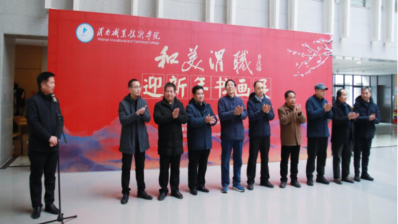 12月27日下午,我院在图书馆二楼大厅举办“和美渭职”迎新年书画展。陕西省政协文化文史和学习委员会副主任陈俊哲、渭南市书协主席薛小虎、渭南市美协主席党宽阳等书画界领导、嘉宾及校党委书记华惠民,副院长王韦华、毛文生和有关部门、二级学院负责人,学生代表参加开幕式。开幕式由毛文生主持。