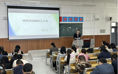 4月10日下午,澳门十大信誉好的网站在综合楼203教室召开春季学期第二次教职工大会。澳门十大信誉好的网站党总支书记杨瑞侠,院长郭楚伟,副院长于晶汝、李永明等领导班子成员出席,全体教职工参加。会议由杨瑞侠主持。