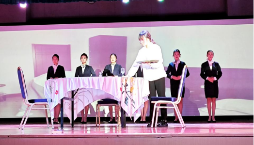 礼仪表演《最美酒店人》展示出毕业生扎实的酒店服务技能。