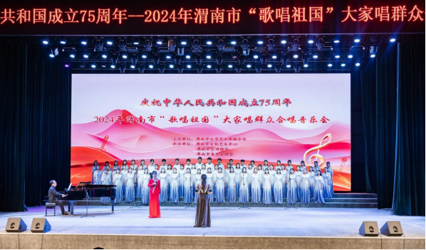 6月20日晚,我院大学生合唱团参加了在渭南市文化艺术中心举办的庆祝中华人民共和国成立75周年2024年渭南市“歌唱祖国”群众合唱音乐会。