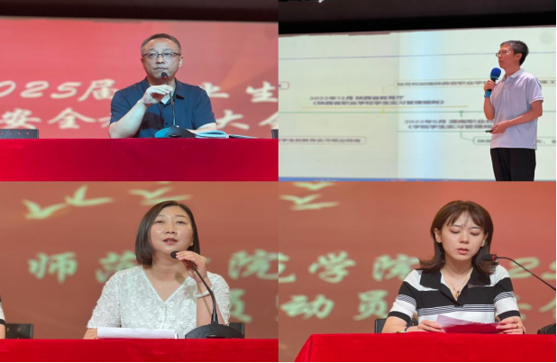 6月25日上午,师范学院在图书馆报告厅召开了2025届毕业生实习动员暨安全教育大会。党总支书记杨瑞侠、院长郭楚伟、党总支副书记黄翠萍、副院长李永明、教学科科长裴昉、学生科科长叶蕊、实习指导教师代表及1000余名2025届毕业生参会。大会由黄翠萍主持。