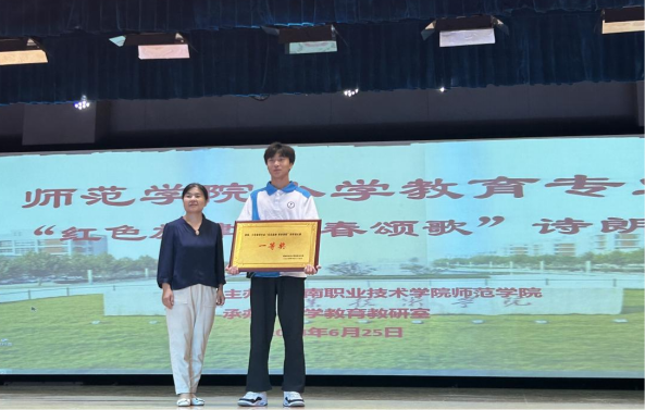 2023级小学教育专业全体班级参与比赛,参赛班级依次朗诵了《建党百年天安门献词》《美丽中国》《觉醒年代》《月光下的中国》等作品,一首首慷慨激昂、富有感染力的诗歌从同学们口中抑扬顿挫、声情并茂地朗诵着,赢得了在座师生的阵阵掌声。最后,小学教育教研室雷立英老师朗诵的《读书的意义》将活动氛围推向高潮。