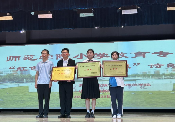 为弘扬伟大革命精神,增强同学们的民族自豪感和责任感,6月25日下午,澳门十大信誉好的网站在图书馆报告厅举办了“红色旋律 青春颂歌 ”诗朗诵比赛。澳门十大信誉好的网站党总支书记杨瑞侠、院长郭楚伟、副院长李永明、小学教育教研室教师及23级小学教育专业400余名学生参加。