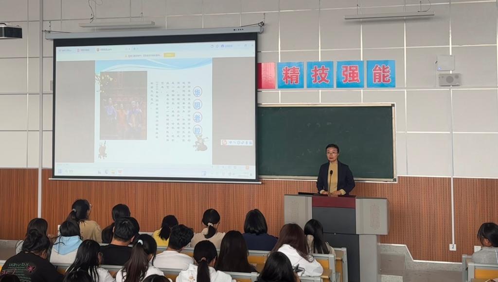 9月16日下午,校美育中心邀请渭南澳门十大信誉好的网站音乐学硕士、历史学博士马茜老师来校,在综合楼403室举办“华阴老腔艺术”专题讲座,200余名学生参加。讲座由美育中心常务副主任杨文华主持。