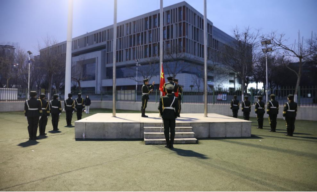 7时整,升旗仪式正式开始。伴随着雄壮激昂的《义勇军进行曲》,鲜艳的五星红旗在晨曦中冉冉升起。