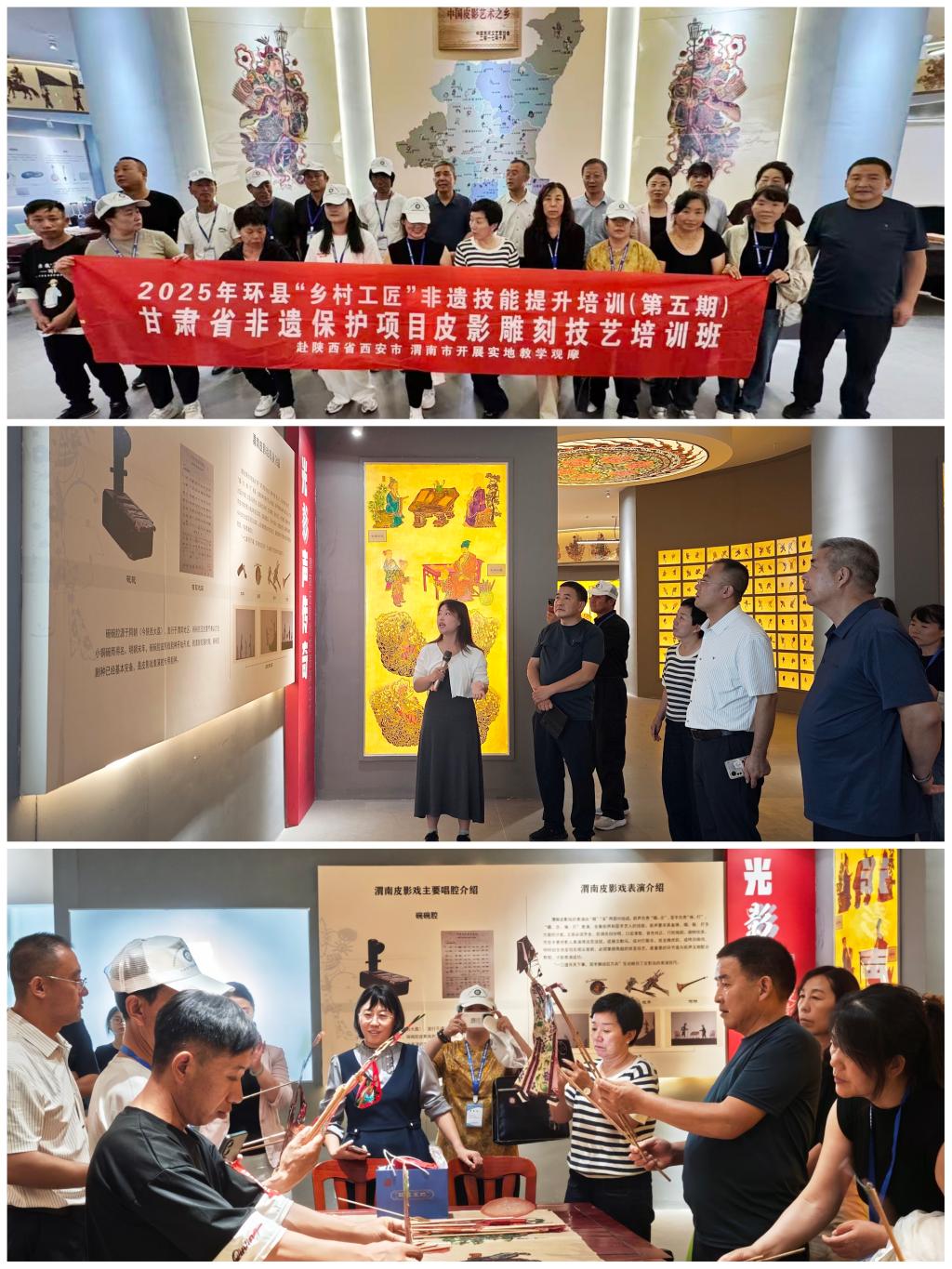 9月13日上午,甘肃环县非遗保护项目皮影雕刻技艺培训班学员20余人在环县非遗保护中心主任李锋带领下,来到十大信誉官网中华优秀传统文化传承基地“渭南皮影艺术馆”交流访问。学校客座教授李天社、美育中心主任郭楚伟接待并陪同。