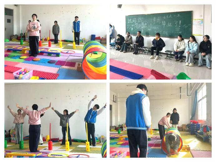 本次教学示范公开课由早期教育专业李明辉老师主讲。课程以感觉统合训练为核心,精心设计了名为“森林大探险”的趣味活动。活动中,授课老师展现出扎实的理论功底和娴熟的教学技艺,学生们分角色扮演各种小动物,通过走独木桥、钻山洞、摘苹果、运苹果等提升手眼协调能力,同时教师利用不同材质的触感刺激提升学生们的感知能力。整个过程寓教于乐,学生们兴致盎然。