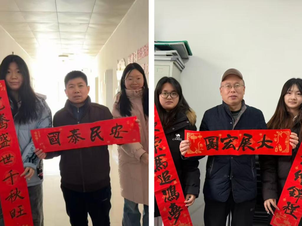 随后,“送福小分队”带着红彤彤的春联与福字,穿梭于教学楼办公室与教室之间。课间时分,学子们将亲手创作的作品送到老师手中,齐声送上新春祝福。老师们接过满载心意的春联,脸上洋溢着欣慰笑容,教学楼内笑语盈盈,师生情谊在笔墨书香中愈发浓厚。